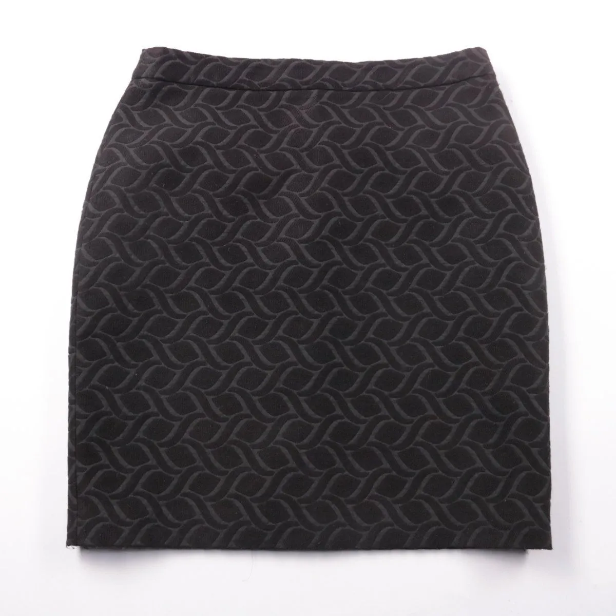 Юбка Gallery чёрного цвета из фактурного материала с тиснёным узором. Подойдёт для офиса и на каждый день, хорошо сочетается с однотонными блузами и водолазками. Плотная ткань держит форму и выглядит аккуратно.