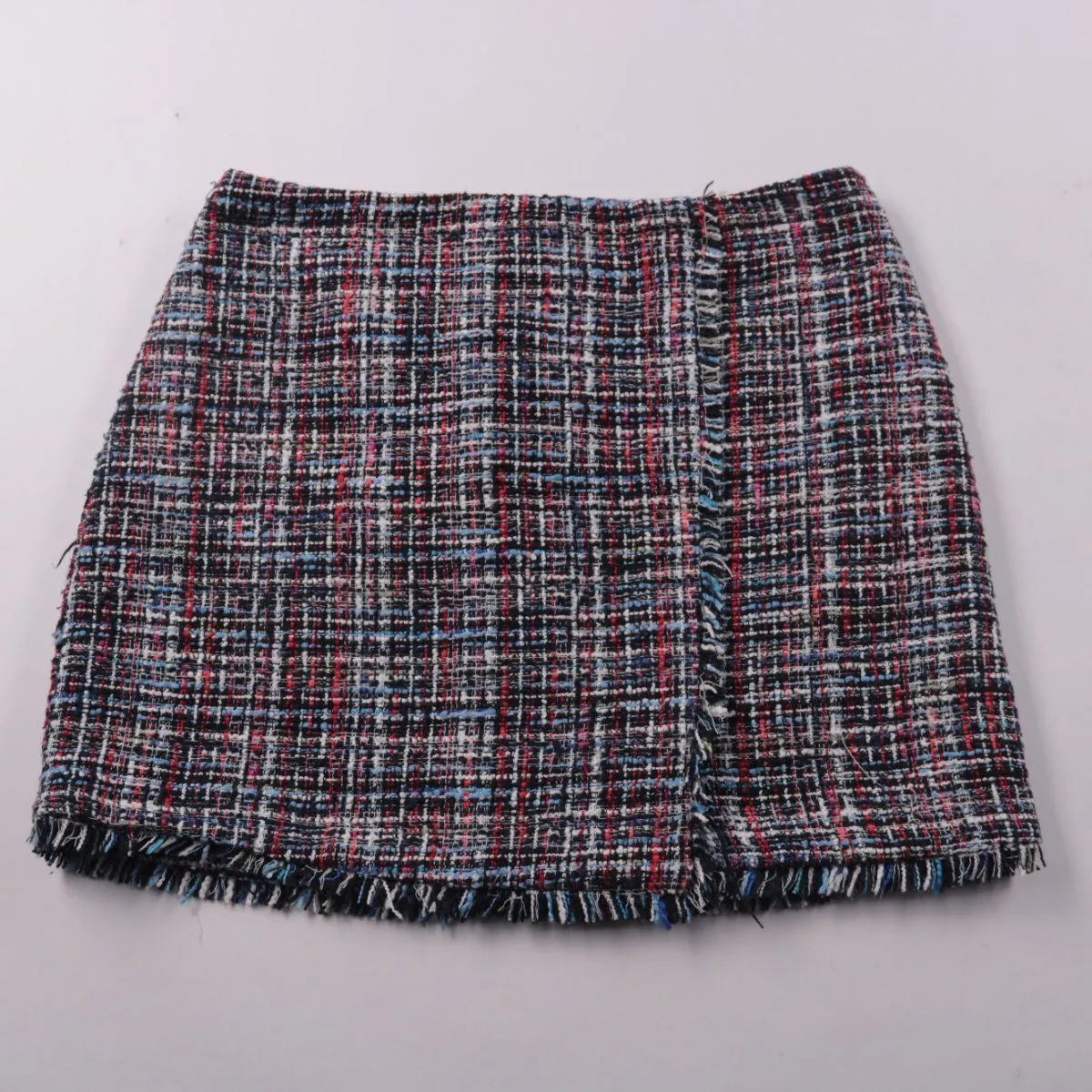 Юбка George из твидовой ткани в разноцветную клетку, длина мини, с бахромой по низу. Подойдёт для повседневных и офисных образов в межсезонье. Есть подкладка, поэтому юбка лучше держит форму и комфортнее в носке.
