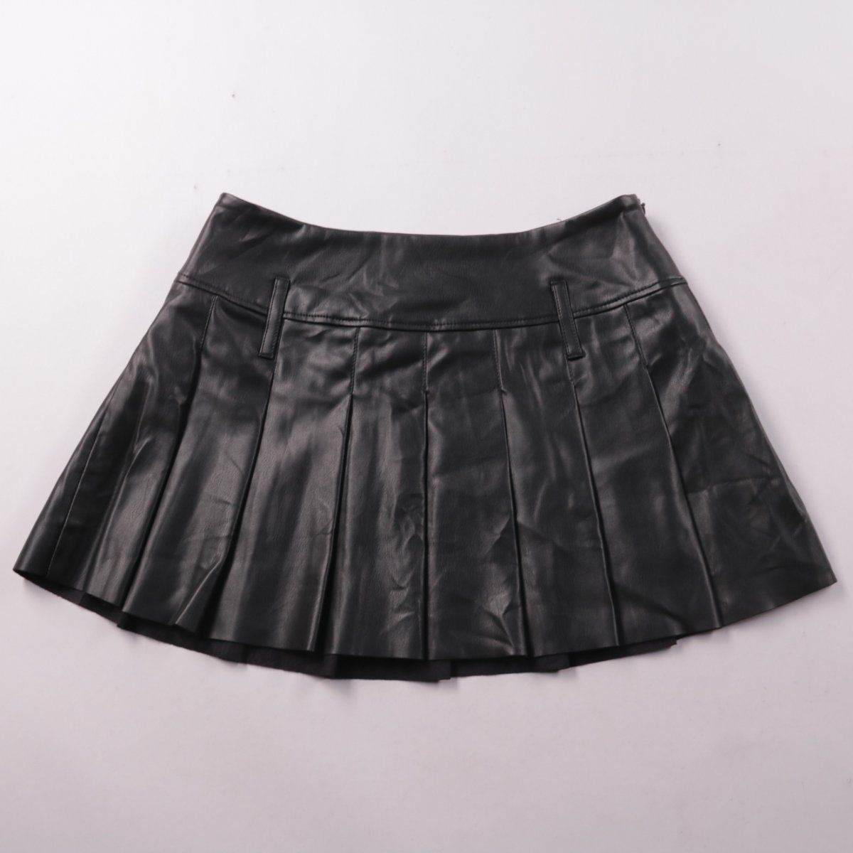 Плиссированная мини-юбка Bershka чёрного цвета с эффектом кожи. Подойдёт для повседневных и вечерних образов, легко сочетается с базовыми топами и жакетами. Материал практичный и не требует сложного ухода.